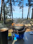 Отдыхали в августе 2023 года 2 недели, жили в кемпинговых палатках с 4мя детьми +  Место стоянки нам попалось чудесное, уютное, немноголюдное; природа просто шик, погода очень быстро менялась, даже когда было холодно,дождь или буря, в тот же день могла быть жара и тишь; +  Заход в воду очень длинный, если вы хотите дойти до глубины, придётся поднапрячься,я так и не дошла, только на сапе, плавала там, где по пояс примерно. детям раздолье, вода хорошо прогревается. Пляж очень чистый ухоженный, песочек чистенький; +  До города недалеко, на машине минут 10, город очень уютный, много магазинов, отличное и вкусное кафе "сосновый бор",баня. +  Есть прокат сапов, виндсерфинга, гидриков, жилетов. Брали тренировки-дороговато,но в целом все понравилось. - крыша туалета течет, она деревянная и в сильный дождь сильно протекает,думаю, лист железа спасет ситуацию; тоже самое в беседках, в сильный дождь протекают; - душ, в кемпинге он необходим, пусть даже за дополнительную плату, нужен особенно, когда непогода. Тут он вроде бы есть, но там нет котла, вода в нем очень холодная, пожелание владельцам этого чудного места-обзавестись простейшим дровяным котлом, дёшево и сердито,по необходимости топить; - питьевая вода далековато, надо было таскать самим, т.к. лагерь длинный может имеет смысл ставить в конце лагеря ещё один резервуар с водой для удобства отдыхающих; - по деньгам не очень логично,берут оплату с человека,в т.ч. с ребенка,а не с палатки,как в большинстве подобных мест Персоналу огромная благодарность, руководству тоже! Вы молодцы! Успеха и процветания!