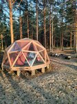 Шаговая доступность к морю, купол сферы из пластика, тк стекло бьется от ветра, ночью даже летом холодновато, рядом крутой пляж, из плюсов есть на территории туалет и типа душ, но он не очень