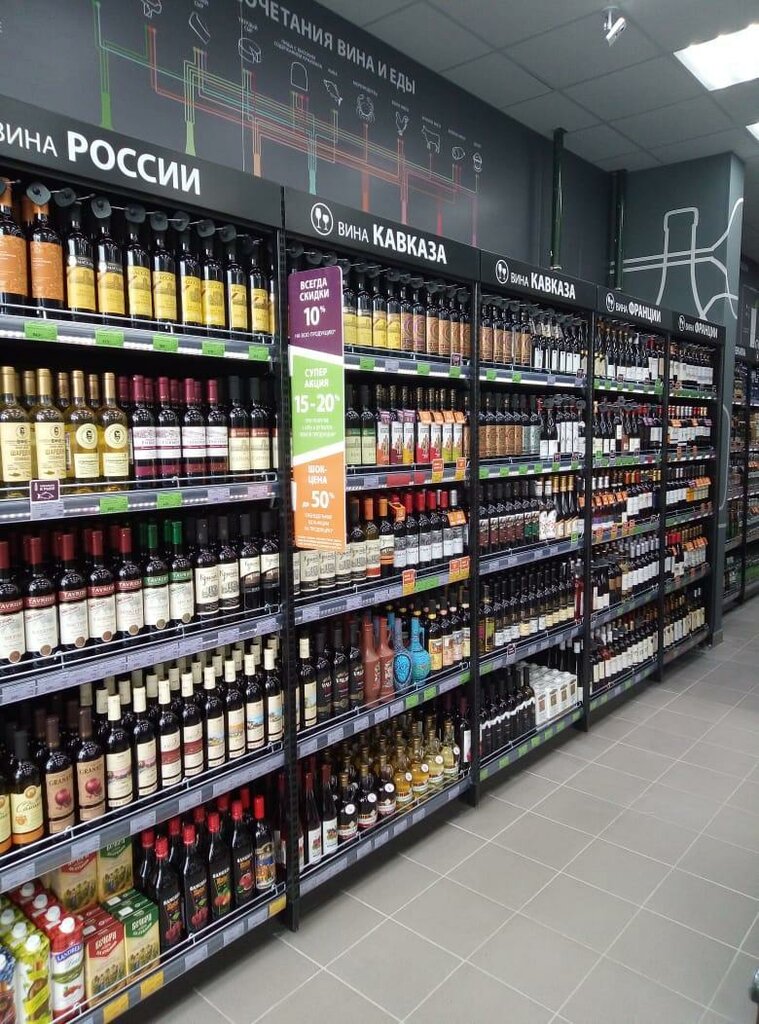 Хороший выбор, сотрудники вежливые и дружелюбные, проконсультировали в выборе напитков, есть бонусная система и скидки. В магазине просторно и чисто