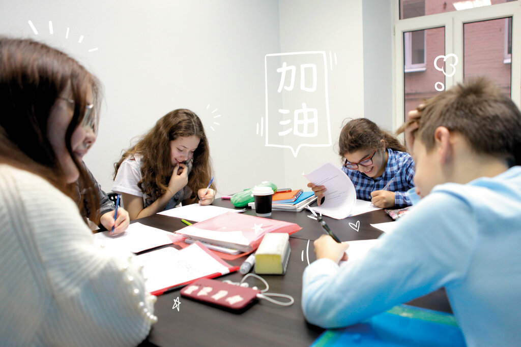 Занятия в группах по 6 человек 2 раза в неделю по 1,5 часа с русским учителем и носителем китайского языка