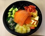 В воке с лососем куча костей и масла (даже для вока), в воке с курицей всего 4 кусочка курицы и опять же много масла, в салате с чукой снова много масла, хотдог холодный. Ждали это чудо больше часа, в итоге получили разочарование с доставкой на дом