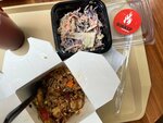 Брал салат коул-слоу: порублен топором с закрытыми глазами, и рис по-тайски: все овощи (морковь, лук, перец) нарезаны кубиками, а при быстрой обжарке кубик, к сожалению не успевает приготовиться - морковь в этом блюде практически сырая. Фото прилагаю. Оценка три. Больше тут не возьму.