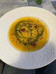 09.03.2026 Вкусная еда, вежливое обслуживание, уютная атмосфера. 4 звезды, тк во многих блюдах есть небольшие минусы, которые в своем сборе достойны снижения одной звезды. - Постный грибной суп: лекций и вкусный, подали еле теплым, что большой минус для холодного времени года. - Чечевичный суп - интересный вкус, тоже был теплым, хотелось бы погорячее. - Французский завтрак: понравился хлеб - свежий и пропитанный сливочным маслом. Не понравилось, что у помидор не срезали жопку. - Салат с тунцом: на фото в меню салат со свежим тунцом, принесли с консервированным тунцом, я расстроилась. Однако, салат очень сытный со стручками фасоли, оливками, картошкой, яйцом. Очень вкусная заправка. Несмотря на то, что я расстроилась из-за тунца, салат очень понравился. По факту - переделанный Нисуаз. - Раф Юбилейны со специями, карамелью и кокосовым молоком: очень необычный нежный вкус, нет неприятного привкуса кокоса, который встречается в некоторых сиропах. Вкус специй не чувствуется. Оооочень сладкий (не минус, больше как особенность). - Авторский кофе «Пунш» с облепихой: переделанный бамбл, где вместо апельсина использовали облепиху. Очень сладкий. - Капучино: зерно понравилось, на мой вкус не хватало крепости. - Лимонный торт: действительно лимонный: крем, безе все с лимоном. Внутри местами добавлена малина, дающая больше кислинки. Лимонный крем внутри нежный и приятный. Понравилось. - Пирожное 3 шоколада: шоколадный вкус, сверху покрыто шоколадным желе, нам шоколадное желе не зашло. Так пирожннное очень легкое (муссовое) и приятное.