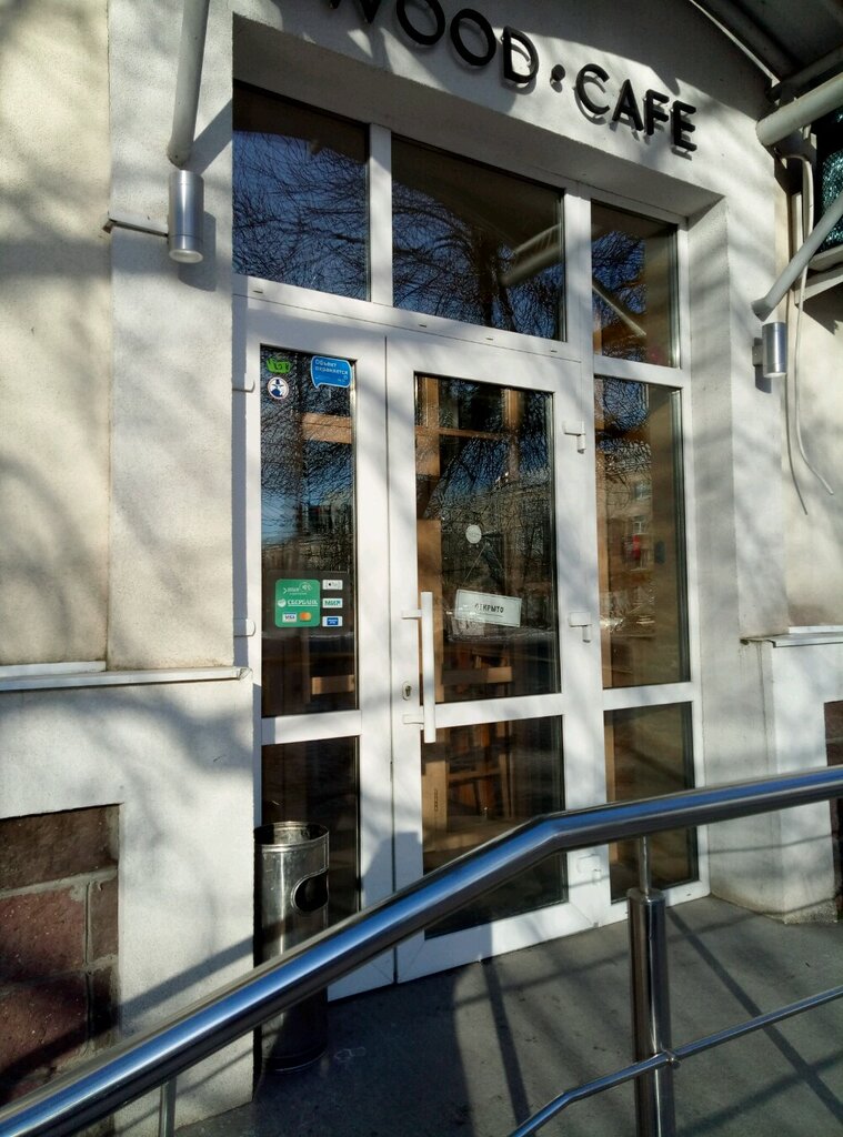 Вряд ли где вы сможете сыскать в нашем районе такое по-домашнему уютное и замечательное кафе, как Wood Cafe. Кафе подкупает своим интерьером, вкусными и сытными завтраками, доступными бизнес-ланчами, вкуснейшей пиццей и пастой, ну и, конечно же - замечательным кофе. Здесь его варят просто великолепно! В дополнении к вашему ароматному и бодрящему напитку вам подадут вкуснейшие десерты ручной работы. У владельцев кафе определенно имеется отменный музыкальный вкус: расслабляющие атмосферные композиции в стиле лаундж предрасполагают вас к неторопливому времяпровождению. Отдельно стоит упомянуть интерьер этого заведения: высокие потолки, большие окна, пропускающие много дневного света. Приглушенный свет, позволяющий вам не отвлекаться на внешнюю суету. На полках различные модные и не очень журналы, книги - всегда есть, что почитать, и это радует. Лучше всего заглядывать сюда вечером - в эти часы здесь становится особенно уютно и атмосферно. Сидеть отдыхать в этом кафе, встречаться с девушкой или просто собираться с друзьями - всё это доступно для вас здесь, в Wood'е. А с новым меню и коктейлями даже самые изысканные ценители высокой кухни и любители провести вечер со стаканчиком хорошего виски или рома смогут открыть для себя это место, расположившеемя в столь незатейливом районе. Не забывайте, что в предновогоднюю пору у них имеется в наличии отличный глинтвейн и шоколадный гжанец, согревающие в крещенские морозы. А любители крафтовых напитков могут заказать себе пиво от пивоварни Jaws Brewery и прочих известных фирм.