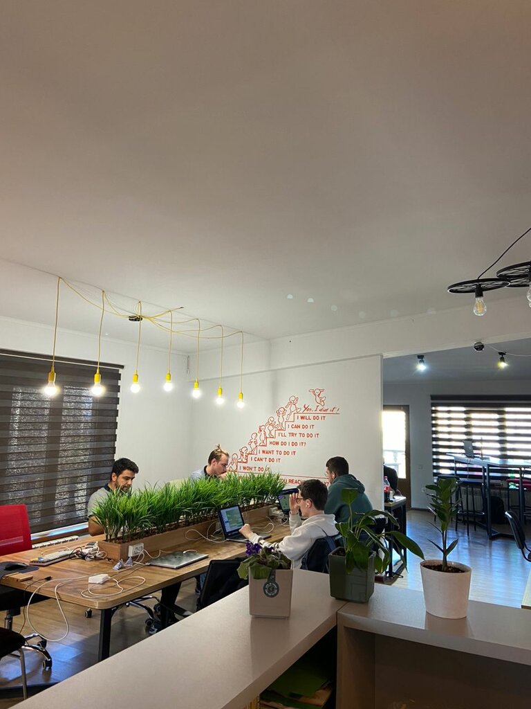 Хороший коворкинг ➕быстрый интернет (5g), ➕приветливый персонал, ➕есть чай/кофе, ➕переговорка и балкон с обалденным видом на горы и мечеть Из минусов: ➖не самое удобное расположение ➖поднялись цены (как и на все сейчас), на 14 дней брали абонемент за 5000 сом на человека
