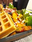 После покупок в Вегасе решили перекусить в фуд корте. Вафли ещё не пробовали да и стандартный набор фаст фуд ресторанов уже наскучил. Заказали с женой в WoWфли три порции вафель: с лососем, с креветками, и банановые с шоколадом. Сказать, что вкусно, не сказать ничего. Очень люблю сочетание лосося и сливочного сыра, тут они были вне всяких похвал, ингредиенты свежайшие и очень вкусные. Шоколад-банан классика, но тут важен сам соус, его было много, и он так же оказался на высоте. Опаленые креветки 🔥Чек получился выше стандартного для фуд корта, но этот обед точно стоил своих денег👍 Ребята, готовьте ещё, бываем в Вегасе не часто, будем заказывать доставку👏