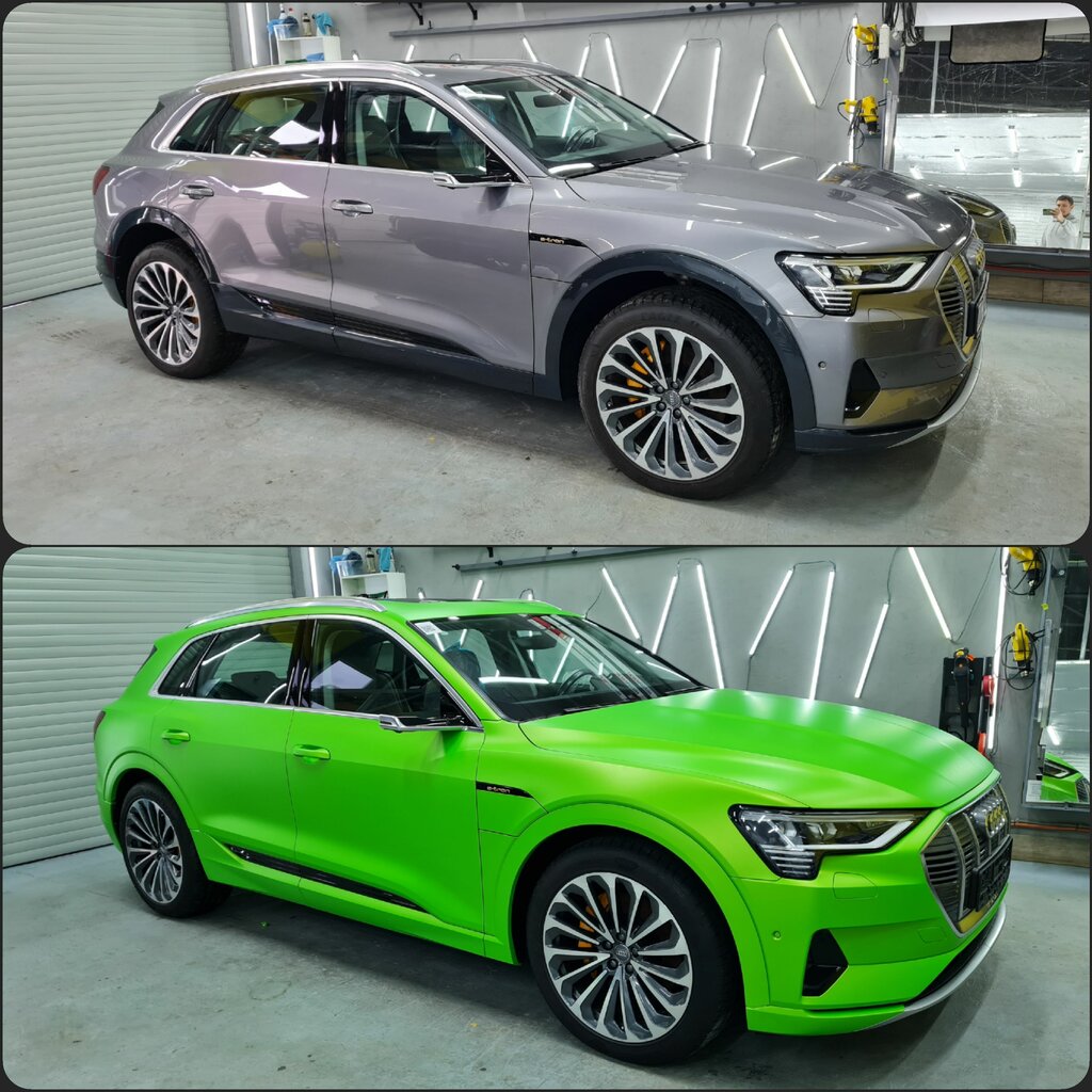 Полная Оклейка автомобиля цветными виниловыми пленками. А так же: Чёрная крыша, Антихром, Реклама на транспорт. Цена зависит от размера авто и качества материала от 100 000 до 200 000