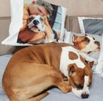 Спасибо огромное за кпчественную печать на ткани. Фото получились настолько реалистичными, что любимая собачка вылизывает свое фото. Очень любит эти подушки.