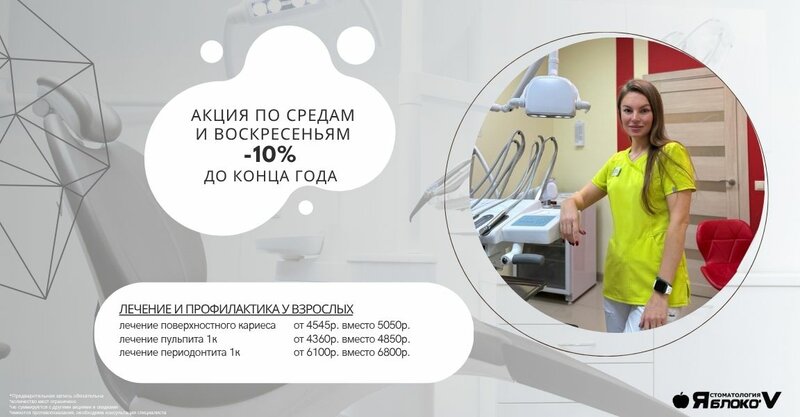 Первичная консультация в "Яблоко'V": Ваш первый шаг к здоровой улыбке Мы предлагаем начать Ваше знакомство с нашей клиникой с бесплатной пе...