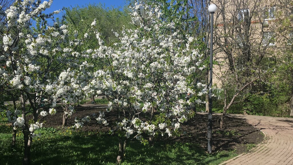 Рекомендую жителям Химки посетить яблоневый сад в пору цветения 5-15 мая. Сад небольшой, но впечатляет разнообразием сортов яблонь и соответствующей спецификой цветов. Это полноценные высокие яблоневые деревья, а не корявые подрезанные плодоносящие. Рядом хорошая автопарковка.