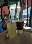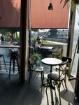 Посетили это кафе днем в будний день - очереди нет, куча свободных мест внутри, а веранда занята. Внутри прохладно и приятно находится, приветливый персонал, тихо и спокойно. Брали эспрессо тоник и лимонад с иибирем (хотели детокс воду, но её не было, к сожалению). Попросила сделать лимонад без мяты при оплате (тк на неё аллергия), сказали ок, но к сожалению в итоге он был с мятой. Грустно, но вкусно, с кислинкой и горьковатым послевкусием после имбиря, 9/10(тк мята была). Касаемо эспрессо тоника - очень красиво выглядит, на вкус также - сладко и кофейно, 10/10) Цены, учитывая местоположение, дорого-приемлемые, 620 рублей за 2 напитка. Надеюсь получится вернутся попробовать кухню)