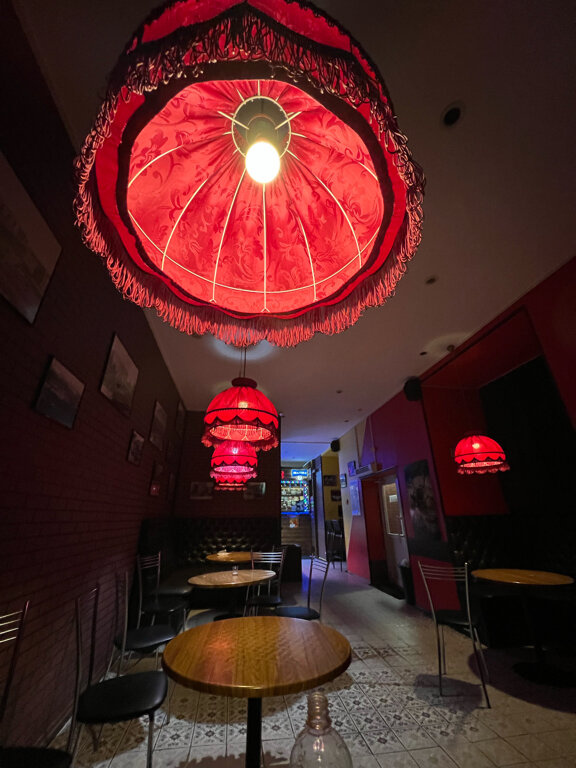 Заведение требующее того, чтоб его срочно закрыли. Постоянно неадекватный "контингент" под градусом, рядом остановка общественного транспорта с видами на происходящее. Очень жаль что нормальные кафе из детства, превращаются в подобные отхожие места, просто потому что это выгодно.