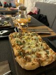 Были в выходные семьей на Дне Рождения у зятя)👍 небольшой ресторанчик в два яруса, мы на нижнем, т к нужна была детская комната для ребенка, там большой экран с мультиками, хотя малышка не смотрела, доска с мелом и мяч, всё. Заказали сэт, пиццу, напитки разные, пельмени и т д. Знаем эту сеть ресторанов, хорошая кухня, вкусно😁 имениннику скидка и подарок!)🔥🔥🔥👍 приятное место)