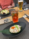 Очень неоднозначное впечатление. Заказали Маргариту дважды, первый раз принесли такую, как ждали, вторая Маргарита оказалась такой сладкой, что пить ее было невозможно. Заменили коктейль по рекомендации официанта на виски с колой и лаймом, 3 по акции. Принесли первый, в итоге второй и третий решили не пить 😄 заказали отдельно виски, колу и лед. Есть акция на пиво 2+1, кто любит пиво - имейте ввиду) Еда - понравилась, за исключением шашлыка из куриных сердечек. Цезарь, зеленый салат, мидии, гунканы, чипсы из креветок, сырные шарики - всё было вкусно. Отдельно нужно сказать про команду. Явно не хватает официантов, на кнопку нужно нажимать несколько раз, и даже это не помогает. Официант Александра нам понравилась, все пожелания выполняла, выглядит заинтересованной в комфорте гостей. Спасибо ей за обслуживание)