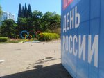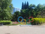 Возле администрации, где есть фонтан бьющий из землм. Есть место, где можно сфотографироваться не только возле колец, но и возле фонтана и возле надписи 2023 Сочи... много зелени красивой, чистота везде. Наличие кафе на любой вкус и карман.