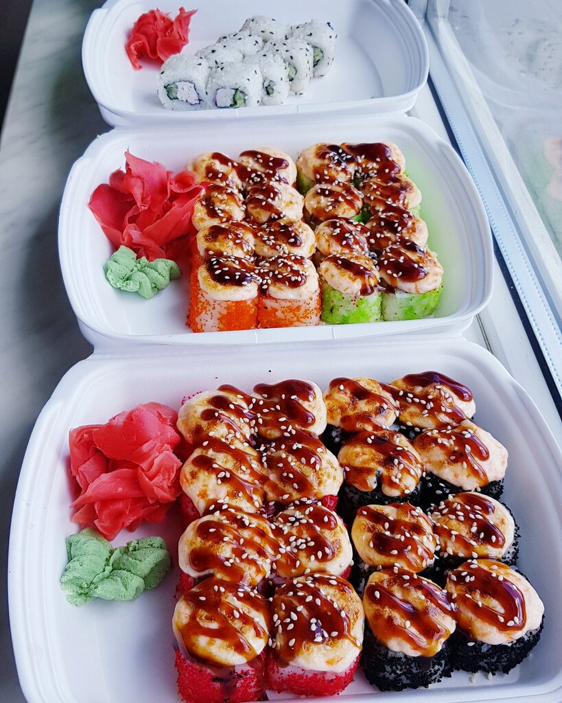 Самые вкусные роллы за последнее время, которые мне доводилось пробовать! Начнём с того, что при посещении заведения нас встретил запах свежей рыбы. Отзыв написан мной через сутки после того, как был приобретён сэт. Потому что для меня было важно выдержать время, чтоб проверить один из параметров качества. Всё прекрасно. Отдельное спасибо за сыр, нежнейший и отменного вкуса. И за рыбу. Единственный вопрос к размеру маки. Они уж очень экономные у вас. Расположение удобное. Забрали по ходу движения сами. Время приготовления было заявлено 30 мин, по факту заняло 40. Но это совершенно не критично. Благодарим вас за наслаждение вкусом. Удачи вам, ребята! Вы молодцы!
