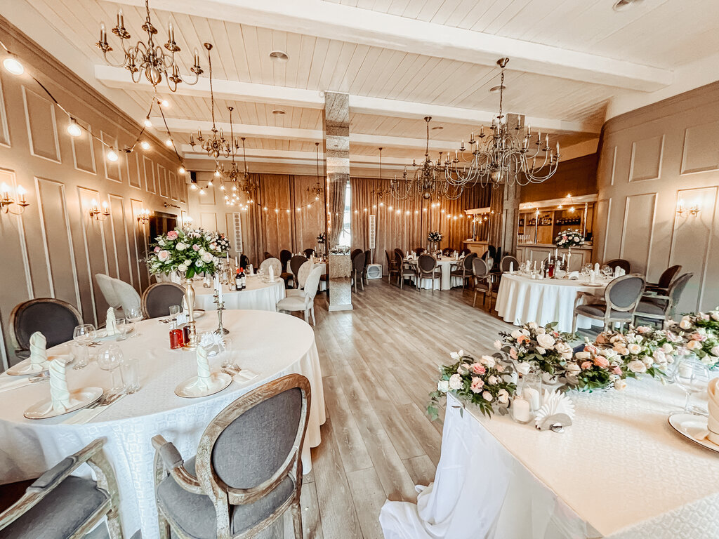 03.06.22 отпраздновали свадьбу в этом ресторане, остались очень довольны по ряду факторов: -расположение просто шикарное, а если повезёт с погодой, то фото на закате 🥰 - еда - очень трепетный для нас вопрос. Смело могу сказать, что все остались довольными и сытыми. Вкусно, красиво, полноценно, горячее 🔥, соотношение цена качество на высоте - персонал, начиная с управляющего Дмитрия, заканчивая официанта ми, Дима очень здорово помогал с расстановкой, пленнингом, ребята официанты были очень заботливыми, учитыыали все просьбы и пожелания - сама площадка, зал не очень большой, но уютный, красивые стены, потолок, люстры, большим плюсом это соседний зал, который служил и раздевалкой для ведущего и комнатой отдыха для детей и тд Мероприятие получилось замечательным Спасибо всем ещё раз