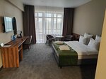 Очень приятное впечатление от проживания. Есть некоторые моменты, которые нужно учесть. Помните, что заходя в отель с площадки перед гостиницей, вы попадаете на четвертый этаж! Гостиница расположена на склоне и первый этаж доступен только с обратной стороны. Пока жил, несколько раз, по ошибке ехал на первый, а том только ресторан ))) Зубную щётку и зубную пасту берём с собой. В набор постояльца они не входят. Зато в номере есть утюг и гладильная доска, что гораздо важнее. Так же в стоимость входит посещение SPA, но им воспользоваться, к сожалению, не удалось из-за плотного графика командировки. Но говорят там хорошо. Ещё одним минусом было отсутствие полотенцесушителя в моем номере (209), в соседних он был. Так что, утром пришлось вытираться немного влажным полотенцем. В остальном, только приятные ощущения от проживания. Завтрак был обычный, но очень вкусный. Особенно, завитушки с изюмом, обязательно обратите на них внимание. Так же порадовал дружелюбный и отзывчивый персонал. За что им отдельное спасибо.