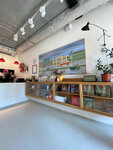 Прежде всего хочется сказать о месте. Во-первых, крутое расположение: если удастся сесть на место у окна, будет отличный вид на пруд в парке Дзержинского. Во-вторых - дизайн. Нет, не так. ДИЗАЙН. Он присутствует, но не чувствуется - это так круто! Очень светло, уютно, красиво, лаконично, удобно. Отдельный респект за смеситель в туалете 😅 - мне было удобно мыть руки, ничего не выливалось из раковины, как когда краник очень мелкий и руки в чашу раковины не помещаются. Очень приятно, что можно самим налить воды из графина у бара. Ну и last but not least: еда тоже отличная. Я брала драники из батата и это было изумительно вкусно. Также хорош клубничный лимонад. Есть одно маленькое замечание: очень хочется, чтобы в меню напитков полностью писали состав, либо бариста его проговаривал (мой лимонад оказался ещё и с лавандой, мне было вкусно, но если бы у меня была аллергия/неприятие лаванды?)