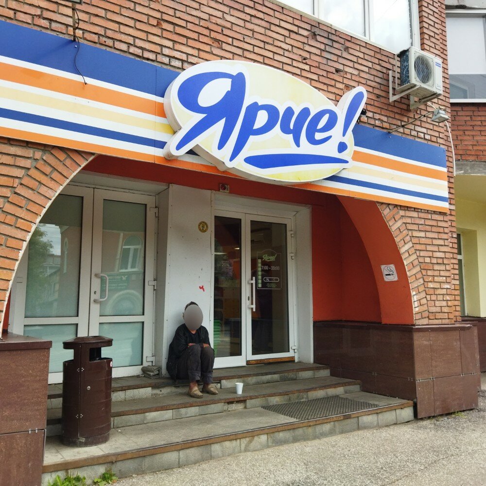 Обычный магазин в центре города,тем- и примечателен,их тут вообще-немного.,удобно заскочить в него,если нужны вкусняшки для посещения Киномакса или хочется латте по разумной цене, всегда много людей,молодежи,студентов-пиво,кофе,выпечка,мороженое...обслуживание,как и во всех магазинах Ярче-стандартно-вежливое,из минусов ,наверное,только размер самого магазина и всвязи с этим недостаточное количество поставляемых продуктов,если заглянете в него вечерком-можете не найти на полках ожидаемый товар, местные жители времени даром не теряют😉,а в целом,я очень люблю эту сеть,здоровья и процветания всем сотрудникам
