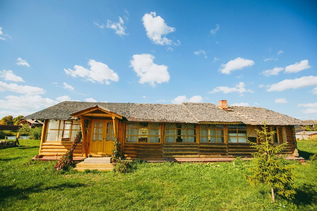 "Дача для шашлыков в аренду" и "поляна под свадьбу или торжество" - кажется, это самая верная характеристика этого места. Бревенчатые дома раскиданы по территории, есть поляны с беседками для торжеств. На территории - несколько прудиков, один с пляжем и лягушатником для детей. Есть канал для выхода на озеро, довольно, впрочем, заболоченный. Ресторан, судя по руинам, сгорел. Неплохое место для сбора большой компанией в автономном формате - пожарить шашлыки и потусить. Но готовить вы будете то, что возьмете с собой, или заказывайте кейтеринг. Дома пожившие, наш люкс был даже без кондиционера. Хотя сруб в целом держит комфортную температуру даже в жару, на берегу озера это все-таки не самое простое испытание. Несмотря на люкс с тремя спальнями, душ - один. При этом сама кабинка неудобная - ни полок, ни вешалок для банных принадлежностей.