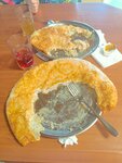 Чебуреки мясо+сыр. Начинки должно быть 120гр, по факту все на фото. Сотрудники переделали чебурек, но сказали, что класть обычно больше они не могут. Нам не надо больше, положите сколько надо. Тесто толстое, в другом заведении той же сети, расположенное дальше, чебуреки делают лучше. По еде в столовой тоже есть вопросы. Недовес макарон по-флотски на 50гр из 150гр. Просили доложить администратора. Макароны по-флотски представляют собой вчерашний гарнир из обычных макарон. В окрошке абсолютно бумажная самая дешевая колбаса. Ну и главное. Работают только с наличными, о чем везде развешены баннеры. Уходят от налогов явно по договорённости раз настолько не боятся никого. На кассе вполне нормально не додать сдачу потому что у них нет мелочи