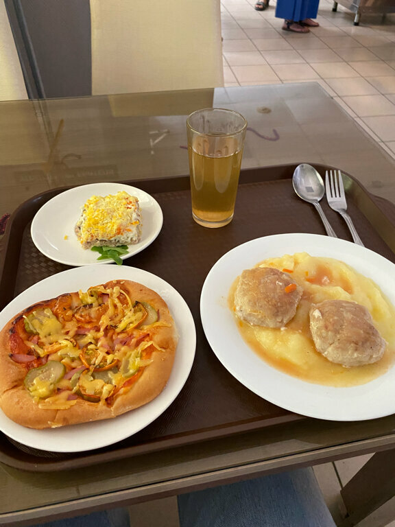 Столовая хорошая, но атмосфера внутри складывается не очень, в связи с поминальным обедом я общем зале Нет никакой перегородки, шторы В первом зале стоят 4 стола в обед все занято, люди торопятся поесть и освободить место для других Раздача быстрая, девушка доброжелательная работает Обед вкусный, выбор есть, все свеженькое, горячее Ставлю 7/10 Минус 2 звезды только за то, что мои глаза и уши видели и слышали людей опечаленных горем и утратой. Не приятненько было доедать салат с такими новостями )