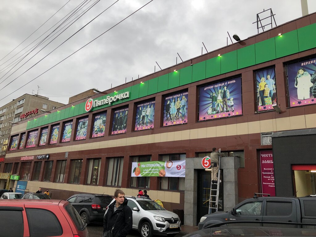 Удобный торговый центр!На 2м эт.маг.Эконом(если кому надо)так же фото ателье и ателье по рем.одежды и обуви.На 1м эт.супермаркет Пятерочка,так же ТестоМесто(кулинария)ларёк для тех кто курит и не курит(Не Дым),так же есть точки с орехами,вскусным салом и колбасой.И рыбный ларечек тоже есть(но там конечно на любителя!)креветка мелкая,ёрщ сырой В подвальном помещении находится Фикс Прайс и Пилигрим,а так же КБ