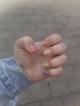 Мастер Алена Железнова. Опил неровный, гель лак пошел жёлтыми пятнами, я недовольна, хотя сам маникюр Алёна делала неспешно, вроде старалась, но больше к ней не пойду.