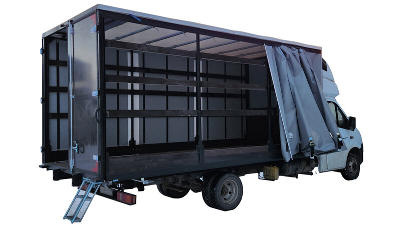Тенты со сдвижными шторками облегчают боковую загрузку. Шторы изготавливаются из тентовой ткани с ПВХ покрытием российского или импортного производства. Компания "Евро-тент Екатеринбург" предлагает сдвижные крыши длиной от 5 до 13,6 метров.