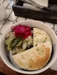 Вкусная еда, приятная атмосфера и сотрудники. Маленький зал, можно прийти на обед с друзьями, но не очень большой компанией. Из минусов: все блюда имеют еврейское название и в меню нет объяснения, что есть что, для тех кто не знает; сложно найти заведение, если уже не был там раньше. Но на вкус это все не влияет, готовят в течение 15-25 минут. Хумус невероятно вкусный!