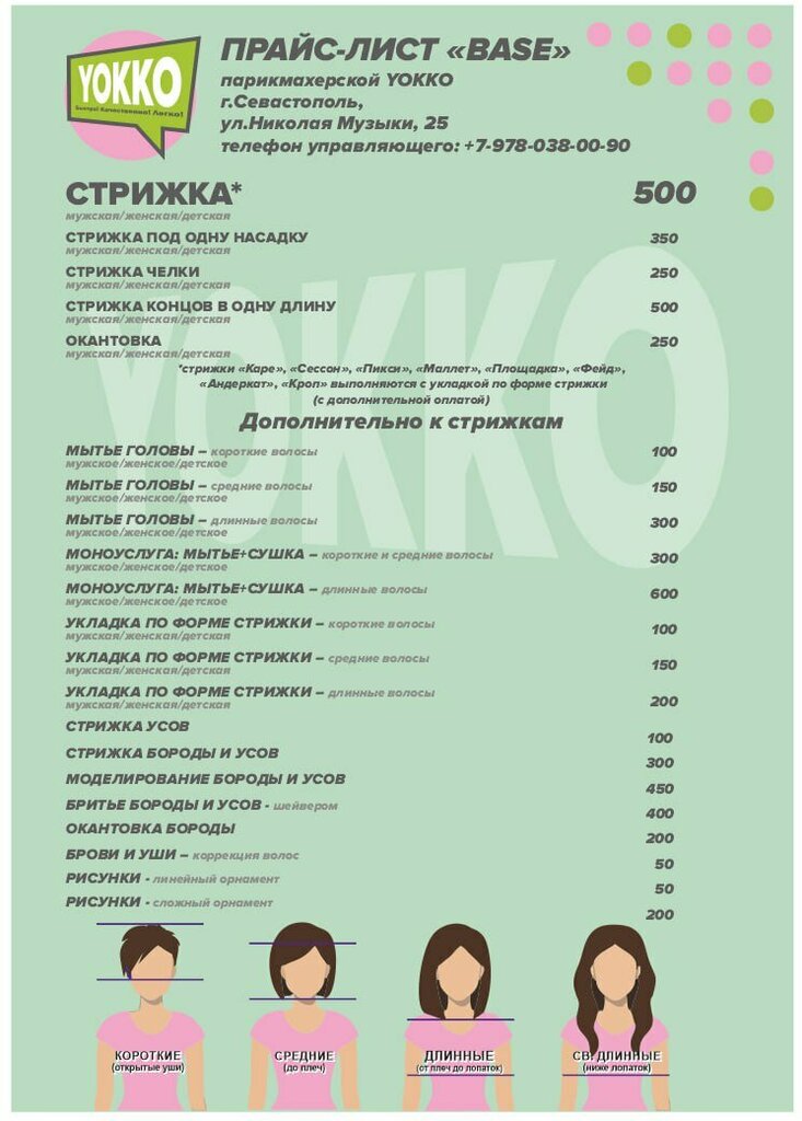 ПРАЙС-ЛИСТ "BASE" - расценки на СТРИЖКИ и сопутствующие услуги