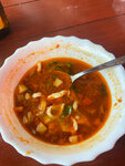 Все блюда мимо: солянка с вареной колбасой и кучей картошки. Лагман с помидорами (!!! их там быть не должно) и кучей мелко порезанной картошки, учпучмак очень (!) сухой! Сосиска в тесте: сосиска дешевая и заветренная (не свежая) не понимаю за что у них хороший рейтинг. Не рекомендую