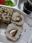 Хотели покушать роллы, но оказалось, что там только готовят их и отдают с собой или на доставку. Мы немного расстроились с детьми, так как после дня города, хотели посидеть в кафе, но пришлось брать с собой. Заказывали Филадельфию. Она оказалась очень нежной: и рыба и рис! Поэтому мы даже забыли о таком маленьком недостатке, как отсутствии столиков. Рекомендую роллы на заказ!