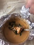 Заказал еду, ужасно просто Положили две вилки, хотя заказал два супа и пасту) ладно, это ничего Том ям похож скорее на мисо суп, сливочный с лососем пресный, паста вообще ужас🤦так же пресная, безвскусная Не понимаю, как можно испортить такие простые блюда на столько удачно)