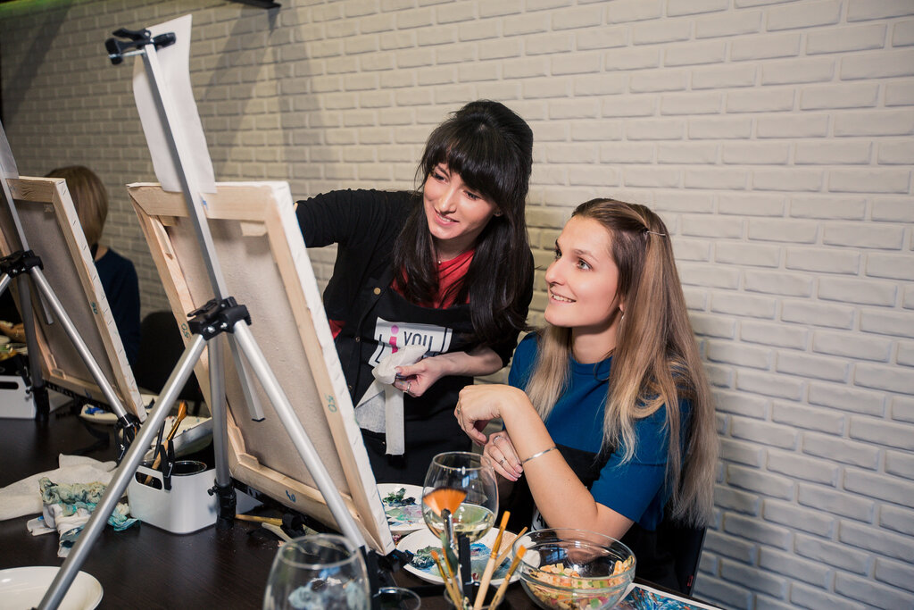Всем, кто хочет писать картины, но боится или стесняется, вам настоятельно рекомендую студию "You Art". Я никогда не могла похвастаться своим творчеством, но под чутким руководством Кирилла, мастерами становятся все. Было очень страшно) но бокал вина привел в чувства всех сомневающихся. Огромное спасибо за классный вечер и за шедевры, которые нам удалось создать.
