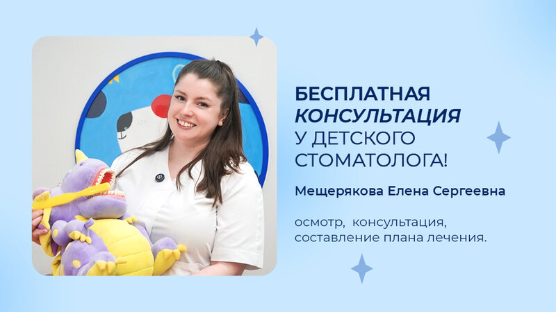 Все акции марта! ✅ Знакомство с доктором! Бесплатная консультация у нового детского стоматолога Мещеряковой Елены Сергеевны. Осмотр, консу...