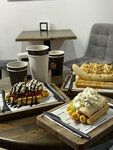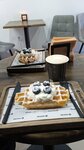 Брали очень вкусные вафли с творожным кремом и голубикой, которые приготовила для нас очень приятная и милая девушка-бариста. Какао и капучино тоже понравились. В общем было вкусно и приятно посидеть в этом маленьком кафе.