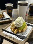 Довольно вкусно, большой выбор вафель. Ожидание составило ровно 20 минут, что нормально для вафель, я считаю. Видно, как их готовят, и рабочее место бариста, кстати, чистое и аккуратное (видела старый отзыв, в котором были претензии к этому, но сейчас всё хорошо, всё исправили). Помещение маленькое, но это придаёт уюта. Мега-вафли оправдывают своё название, я прямо наелась. Понравилось, что начинки не пожалели!