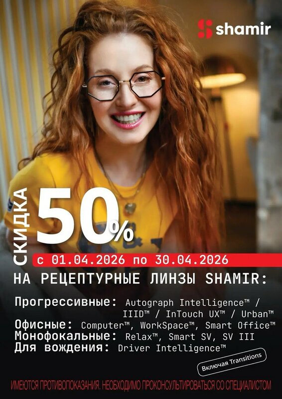 Скидка 50% на линзы для очков компании Shamir!