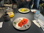 Читателям данного отзыва - здраво! Зашли сегодня с Дариной-Адидас в это заведение , и вот мой разбор полетов. Я взяла сырники с ягодами и от ягод там только название … да уж… буквально 5 голубичек и клубничный джем , но сами сырники были прям очень вкусные , нежные и такие сливочные, прям очень понравились Еще один минус этого блюда его цена … 550 руб за 3 сырника это сильно…) оценка 7/10 Моя подруга по кликухе Дарина-адидас брала тост с тунцом, он был обычным, ничего особенного, но она им наелась, мужчина бы не наелся явно… так еще и за 670 рублей .. тоже прям оверпрайс 🙄 7/10 Также мы взяли чай с лавандом имбирем мандарином и он прям очень вкусный был 10/10 НООООО дай бог чуть больше половины в чайнике этом было Само пространство зачет — чисто, тихо музыка качает, уютно. Но встречать у порога не стали, как в нормальных заведениях. Сервис — очень подкачал : толпа народа болтается, типа заняты, а сами в астрале. Хотела изначально взять салат — никто не спросил про аллергию, сама спросила: “Руккола есть?” — “Есть”. “Уберите” — “Тогда весь микс долой”. Бред! Ещё бесит, что сам с открытой кухни тащишь заказ, пока эти “официанты” и баристы тусуются без дела. Камон, пацаны, вы чё, на районе так работаете? Туалет чистый, но раковина в воде — кран брызгает, как из шланга, весь мокрый стоишь. Мыло есть, а крема и доп.элементов — ноль. Вернусь ли? Не знаю даже братаны… посмотрим на репутацию этого заведения в будущем. Но даю слово пацана - что этот визит я никогда не забуду!