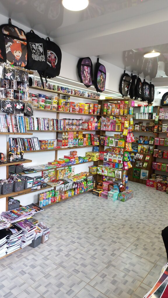 Очень крутой магазин, лучший в своей тематике! Выбор шикарный, очень много в теме аниме, разнообразные плакаты, футболки, сумки, рюкзаки, значки, красивейшие фигурки, много вкусностей, напитков - в общем, очень нравится, рекомендую к посещению!