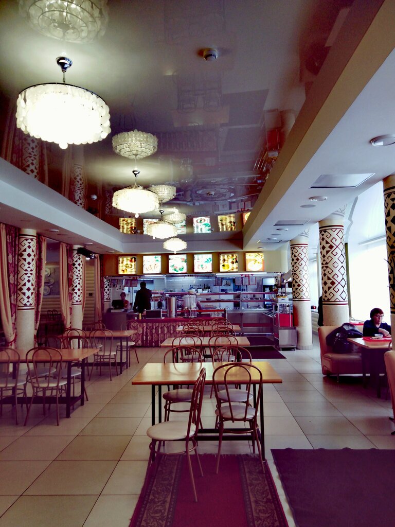 Очень необычное кафе столовая. Во-первых, очень интересное оформление с чувашскими национальными костюмами. Это очень привлекает. Выдача по типу столовой. Очень интересный суп из потрошков. Шурпэ. Сыну суп очень понравился по вкусу, но не по виду. 😁 В целом приятные цены, скромный выбор. Еда приличная. Сняла звёздочку всё-таки за вкус еды. Хотелось бы поинтереснее. На раз- два точно советую. Постоянно не пошла бы.