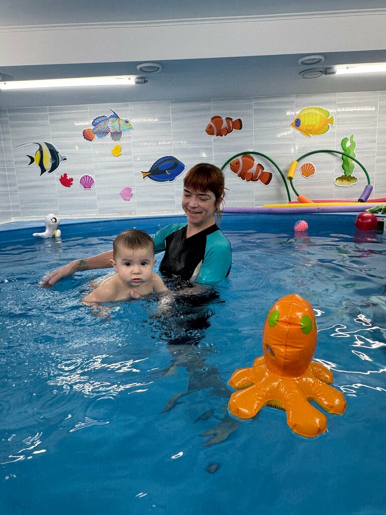 Нас встретила прекрасная девушка администратор, всё показала и рассказала, инструктор Марина сразу полюбилась и мне, и сыну. После пробного занятия сразу взяли абонемент 😅 Бассейн уютный и просторный, всё чисто, много картинок на стенах, которые малыш с удовольствие рассматривал, комната ожидания тоже очень здорово обустроена, но, в силу возраста ребенка, мы её не испытали Будем и дальше ходить и рекомендовать друзьям