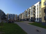 Данный жилой комплекс очень миленько выглядит. Закрытые от машин дворы, детские площадки, дорожки, растительность- маленькие сосны, кустарники. Красивая плитка во дворах, уютно. На первых этажах домов есть магазинчики, сразу за территорией аптека и магнит, на территории магазин КБ, пункты выдачи озон и др. Территория закрытая, вход с ключом через калитки. Есть парковки.
