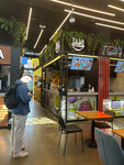 Весьма посредственный наси горенг: если точнее, он вообще не похож на наси горенг по вкусу, по крайней мере, на балийскую его версию, но это было бы не критично, будь этот жареный рис вкусным. Он довольно пресный, овощей немного, а креветочные чипсы отдают чем-то прогорклым. Из плюсов - порция действительно большая, креветки нормального размера и в адекватном количестве. Одна из немногих точек на фудкорте, где есть пиво, хоть и недостаточно холодное для меня. Девушка на кассе как будто не очень была рада видеть гостей (вечером 2 августа 2025).