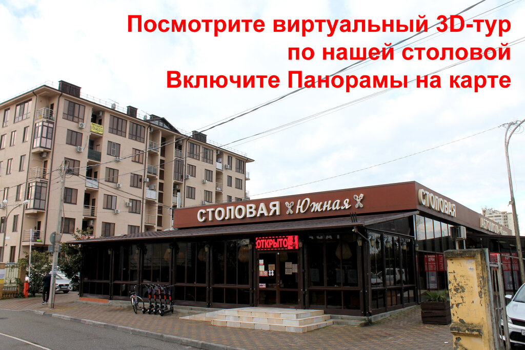 "Южная" столовая одно восхищение. Чисто, уютно и очень вкусно и всегда свежие блюда. Еда разнообразная, на различный вкус и кошелёк. Могу сказать одно, моя внучка съедала всё, что мы ей приносили и мясо, и овощи, и салаты, очень вкусный плов, шашлык из куриного бедра без косточки, мясо по тайский, солянка, что не возьми всё вкусно. Кто будет в этом районе отдыхать, как мы, приходите кушать в эту столовую, не пожалеете, и цена ниже чем на Набережной улице в столовой или в "Кормилице"