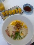 Место замечательное! Официантка просто 🥹❤️, очень приятно общалась и все делала вовремя! Сырный рамен 10/10 , мисо рамен был с курицей вместо буженины , но он тоже 10/10!! Поке оказался одним из самых вкусных, какие пробовали! И цены вполне комфортные для такого места и качества продукта. Посетим еще ни раз! Из предложений - добавьте лимонады или какие-то холодные напитки🥲