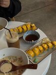 Заказывали креветки в кляре, том ям с рисом и рамен мисо. Большие порции и всё очень вкусно. Бульон в том ям можно сказать эталонный. Не хватили грибочков и было бы классно побольше помидоров (был только один черри разрезанный напополам). Креветки три больших - в принципе на такую порцию хорошо ) риса тоже достаточно было. Обслуживание понравилось. Хотели еще попробовать моти, но к вечеру к 21.00 уже не было в наличии, значит, придем ещё за ними))