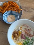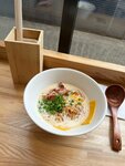 Заходили с друзьями, попробовали все рамены, классные, такие сытные и яркие вкусы, очень круто. Удивила подача, жаренный бекончик и расплавленный сыр, это просто пушка по вкусу, бульон мега сырный и сливочный